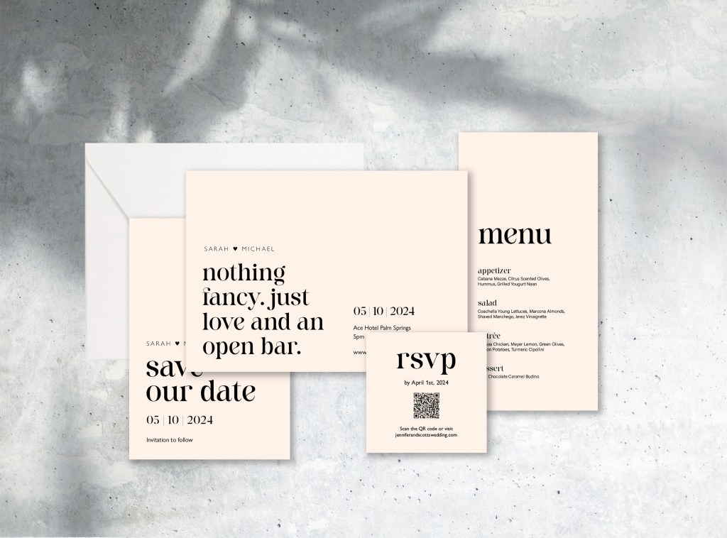 The cherry on top of any wedding will certainly be Crèmè de la crèmè. Giving a nod to modern French design and perfect in all color ways, this stationery suite has that certain je ne sais quoi.