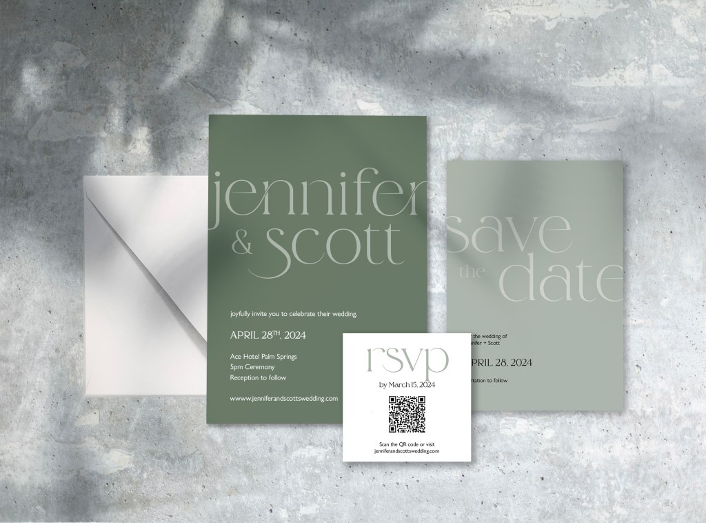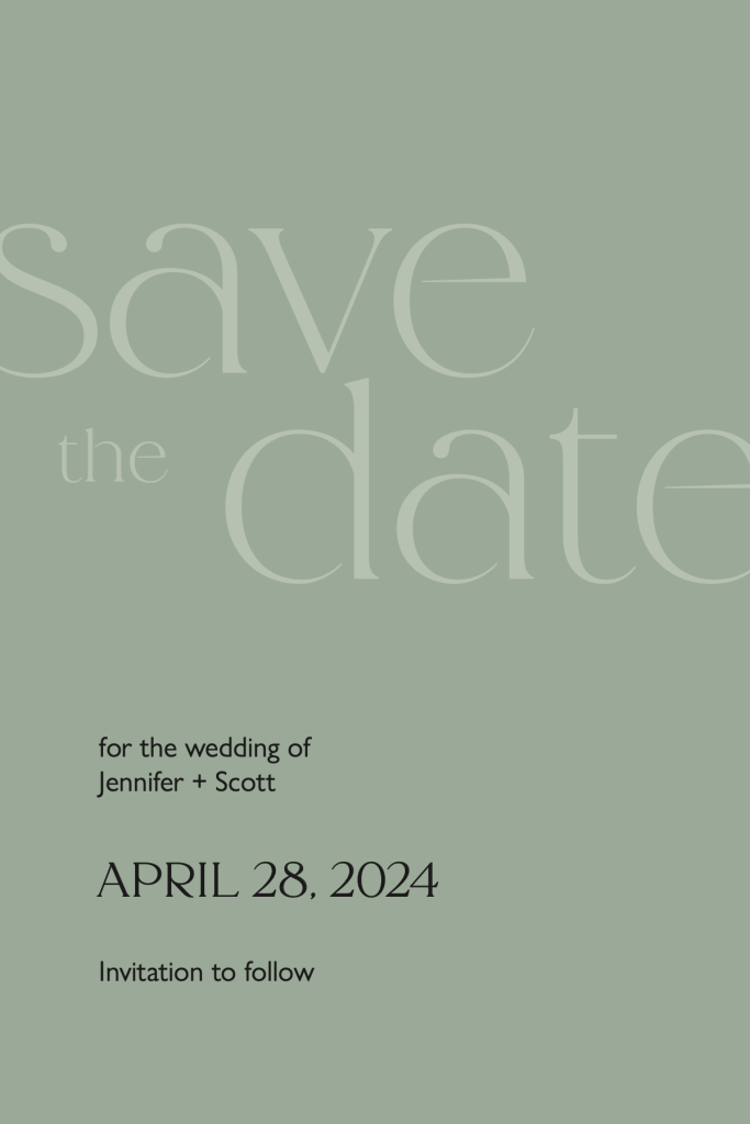 This sublime design incorporates a clean, bold look, pairing eye-catching typography with elegant lines. Modern Muse can be customized with your favorite color palette to match any wedding aesthetic.
