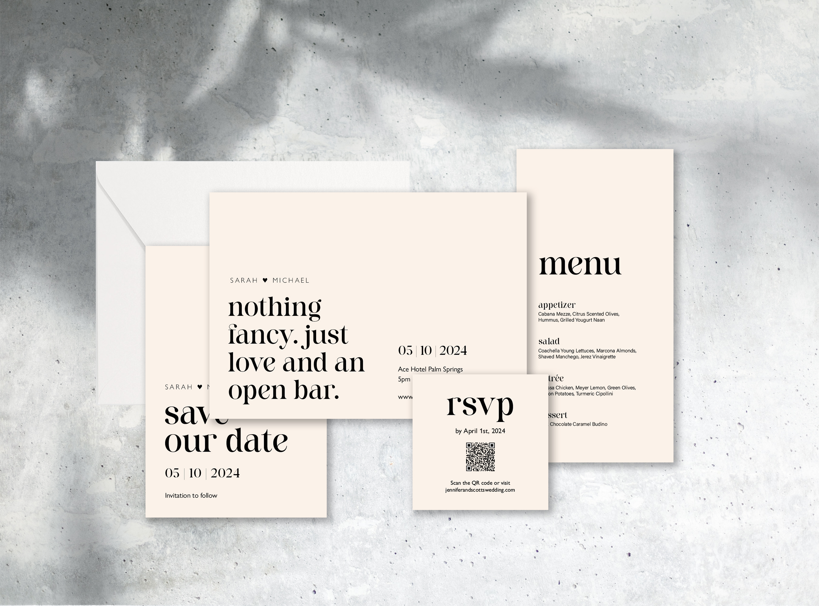 Designed for couples saying “I do” at the iconic Sands Hotel & Spa, Checkmate incorporates the bright, bold, and playful color scheme used throughout the property into this elegant wedding stationery collection. Giving a nod to the checkered tiles inside The Pink Cabana, Checkmate is for the couple who want to weave The Sands’ aesthetic into every element of their wedding journey.